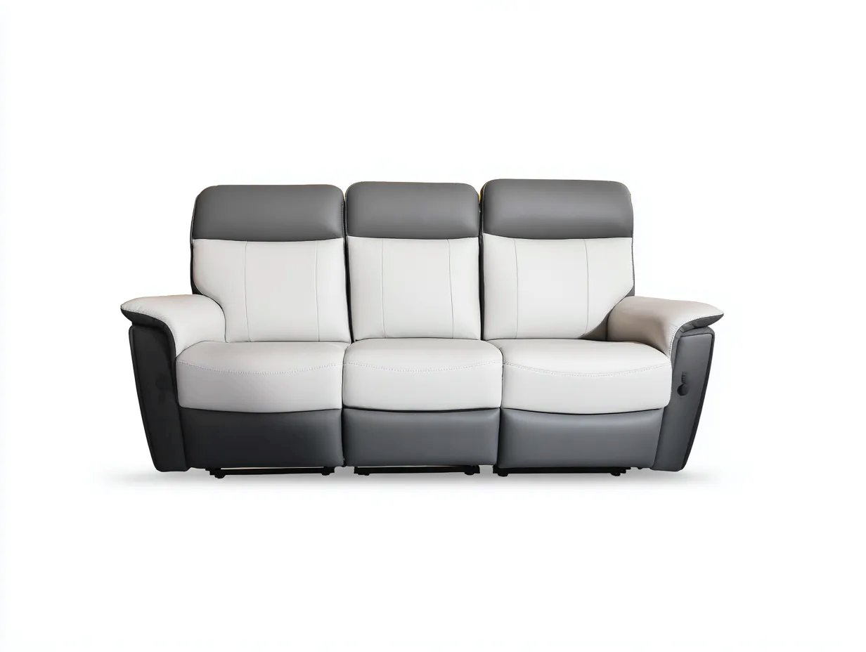 Le canapé est équipé d'un mécanisme de relaxation intégré permettant d'incliner le dossier et de relever le repose-jambes afin d'améliorer le confort lors des phases de repos. Les accoudoirs rembourrés participent à l'ergonomie générale et au maintien latéral.