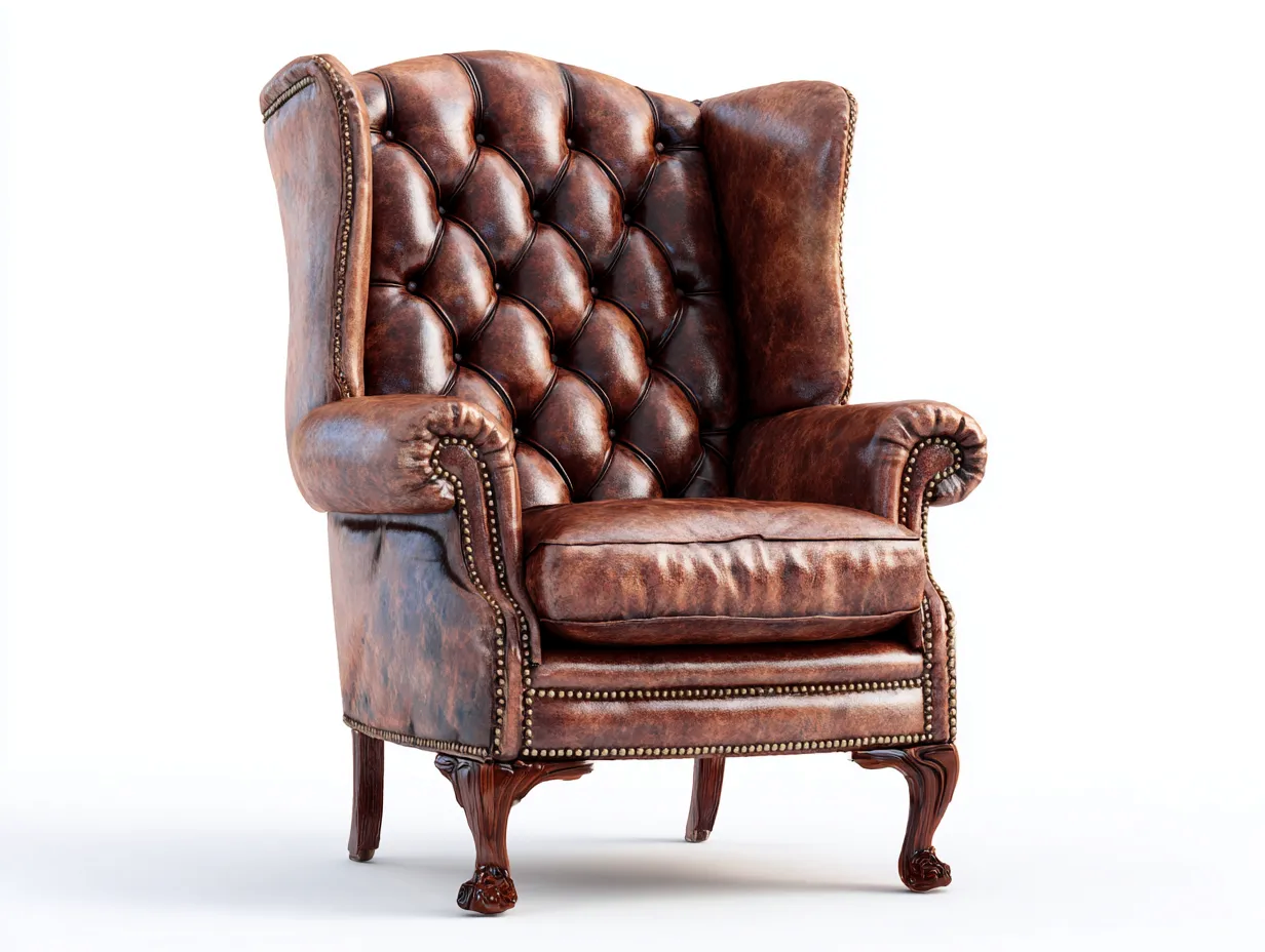 Ce fauteuil à oreilles présente une silhouette élégante avec un dossier haut capitonné et des accoudoirs enveloppants. Son design classique s'intègre naturellement dans un salon, un bureau ou un espace de lecture.
