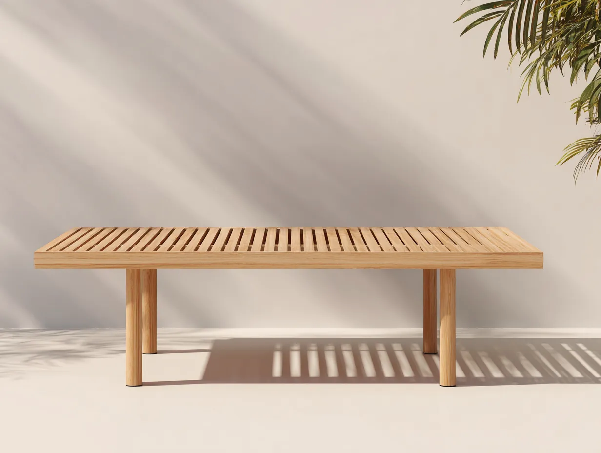Le plateau à lattes favorise une utilisation adaptée à l'extérieur et un entretien simple. Le design épuré permet une association facile avec différents styles de mobilier de jardin.